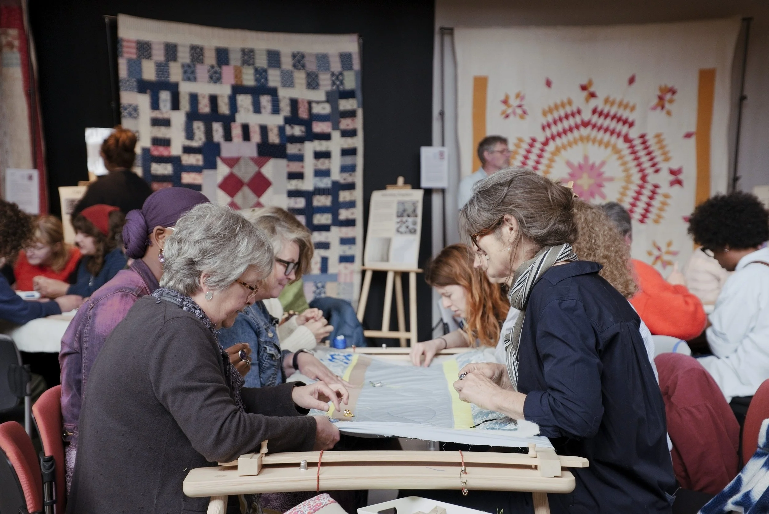 Within the Frame believes that the quilt frame itself offers us a unique tool for building community alongside preserving the rocking stitch. The quilt frame historically gathered people to contribute to the finishing of a quilt, often for a family in need. We can learn from this legacy today as we build spaces of dialogue, intergenerational exchange, and community care.